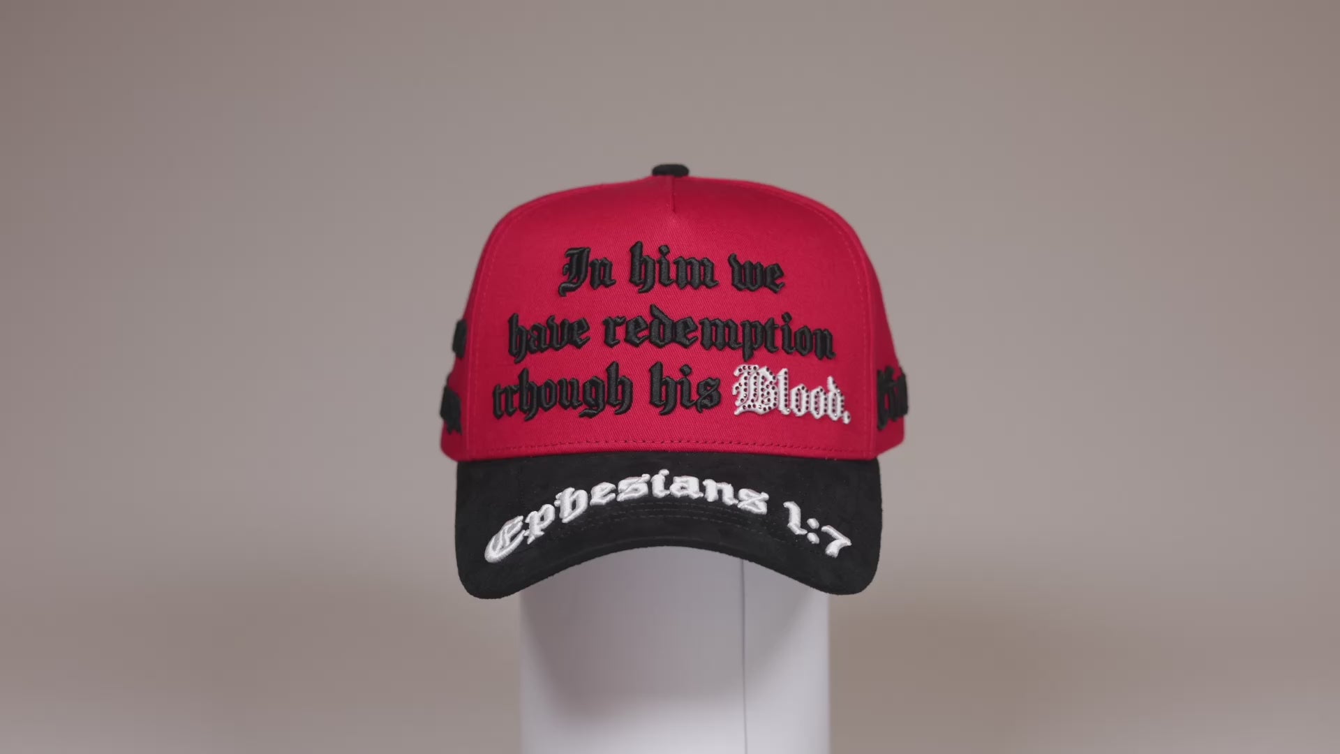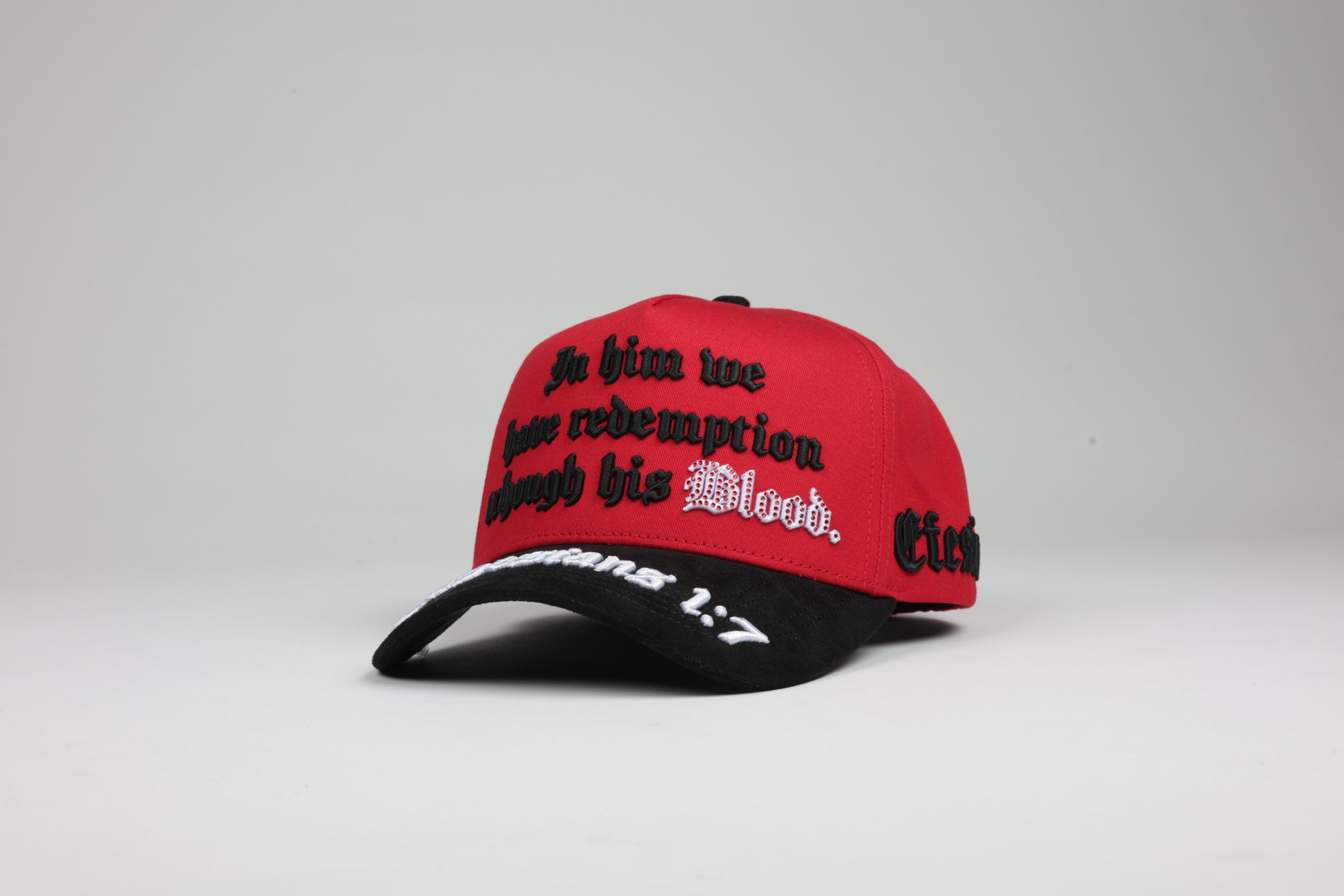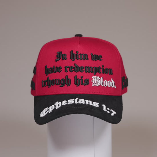 La edición Efesios 1:7 Red/Black transforma la energía del color en un diseño audaz y lleno de propósito. Su cuerpo rojo con visera negra crea un balance visual fuerte y moderno.