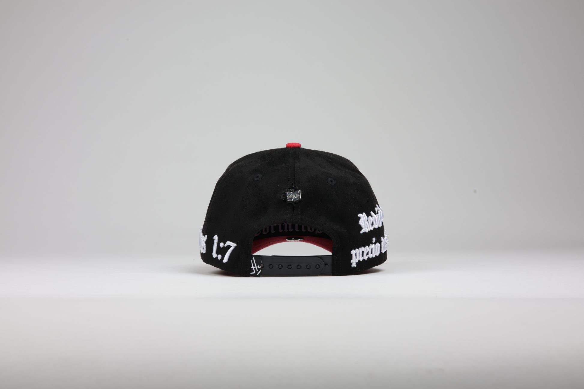 La edición Efesios 1:7 Black/Red destaca por su bordado premium en inglés y español, con tipografía tipo gótica cuidadosamente elaborada para dar carácter y fuerza al mensaje.